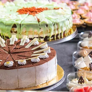 Un petit-déjeuner sous forme de buffet peut être apprécié à la propriété. Les hôtes peuvent prendre un repas au restaurant à la carte ou un verre au bar piscine. Le bar offre une télé et une gamme de boissons exquises. Les invités peuvent visiter le Restaurant Sacre qui sert des repas européens.