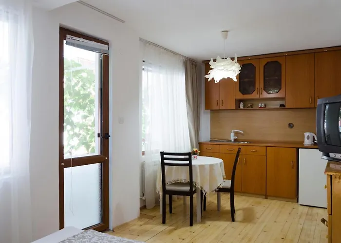 Guesthouse Sonya Sveti Vlas está situado no distrito de City-Centre, a 34 minutos de carro do aeroporto Internacional de Burgas. A propriedade fornece 6 quartos equipados com mini frigobar, sofá e máquinas de café/chá para uma estadia agradável em Sveti Vlas.